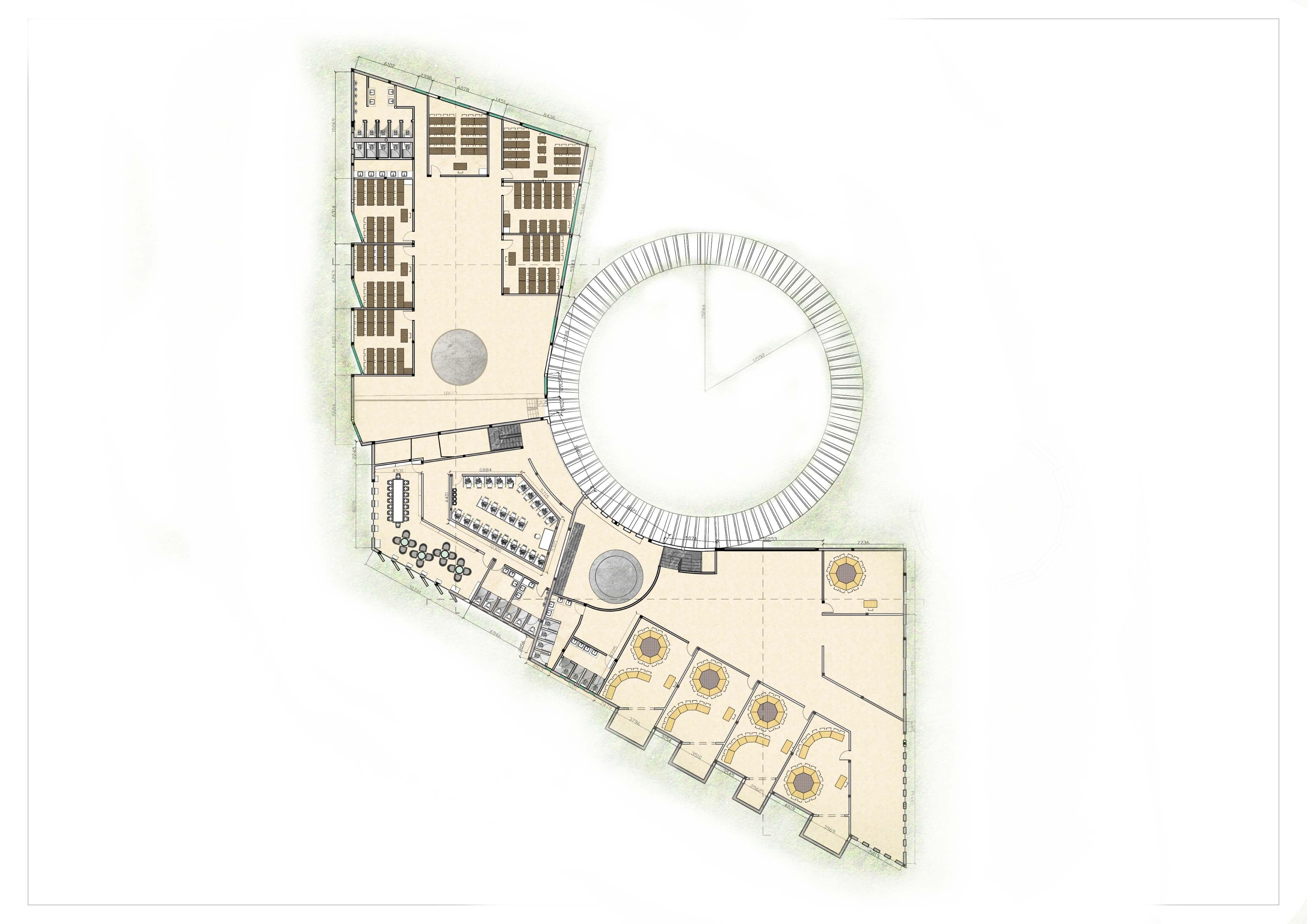 a contoured site. The hand. It is a school prerd. The school should e activity zones. As the of wings of a bird dated with various ty of plant species, a classrooms, indoor t different levels. The y administrative block s of canteen, computer s, playground, etc. The The climate has been ample amount of hilly winters. A clock the design to the of lights and shades ase, jali windows, round mall niches on the wall d enjoy during their colors in the interiors ach design element is erience for the