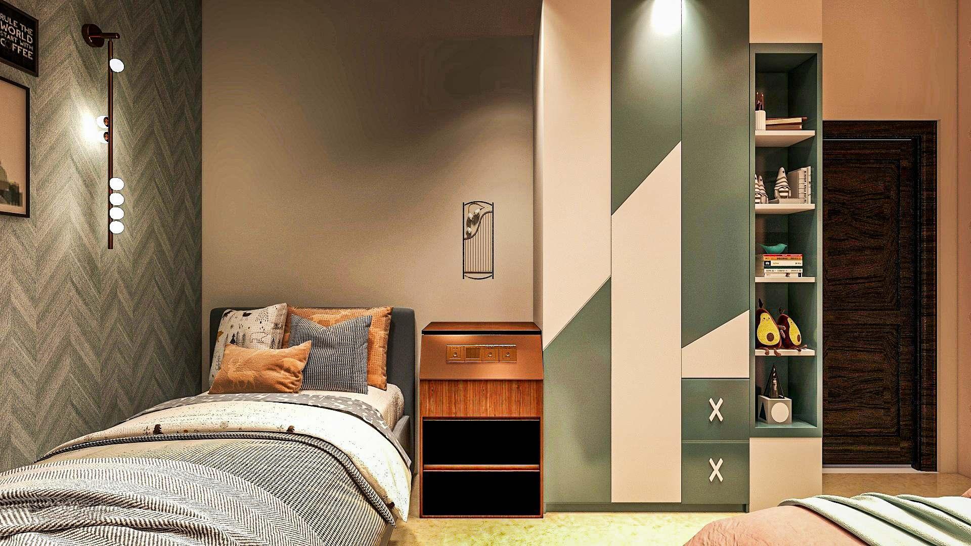 The pub has been designed keeping a mixed use of styles. A central bar counter with profile lights around which the entire pub revolves has been kept minimalistic with use of different types of lines. Being a commercial project the spaces have been used to its maximum extent. Circular seating in a group of three has been arranged with floor lights in the middle to manage the amount of light in the pub. Metals with wood has been used to show a transition with hues of grey and green. The area around has been designated for various purposes such as group sit outs, game zone, dance floor and DJ. The way from entrance leads to wall cavity seating separated by a metal partition wall. The game zone is surrounded by brick pillars and vintage paintings. Wood used in the game tables and the color of the wall, all give a vintage effect. Depth illusion paintings have been used below the mezzanine floor so that it does not feel claustrophobic.