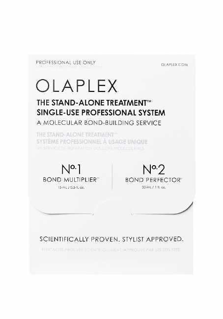 Nº.1 Bond Multiplier™ and Nº.2 Bond Perfector®–the first-of-its-kind, 2-step, professional-only bond-building treatment that made damage repair and prevention possible in any salon service. The highest concentration of patented OLAPLEX Bond Technology™ works on a molecular level to mitigate hair damage by repairing all 3 hair bonds– including disulfide bonds–caused by chemical, thermal, and mechanical damage. Add to any chemical service or use on its own.