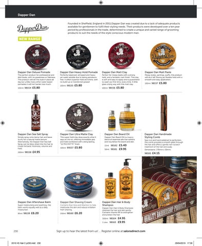 Dapper Dan Founded in Sheffield, England in 2011;Dapper Dan was created due to a lack of adequate products available for gentlemen to fulfil their styling needs. Their products were developed over a ten year period by professionals in the trade, determined to create a unique and varied range of grooming products to suit the needs of the style conscious modern man.