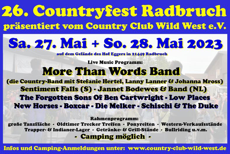 More Than Words, Low Places, Fresh Horses, The Forgotten Sons Of Ben Cartwright, Schischi & The Duke ab 11:00 Uhr | Countryfest Radbruch, Hof Eggers