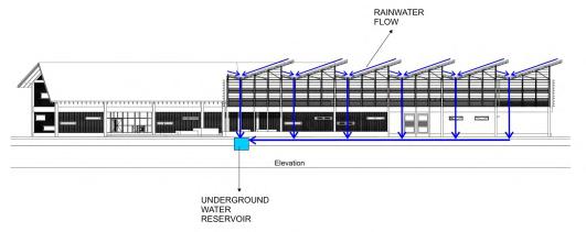 “The orientation of the building mass facing north and south, as well as a shape that extends from east to west which avoids the absorption of solar heat in the building. Building orientation like this, apart from being good for planting areas, is also benecial for the processing area considering that the area has a dense activity. So that building users do not feel too hot inside the building.”