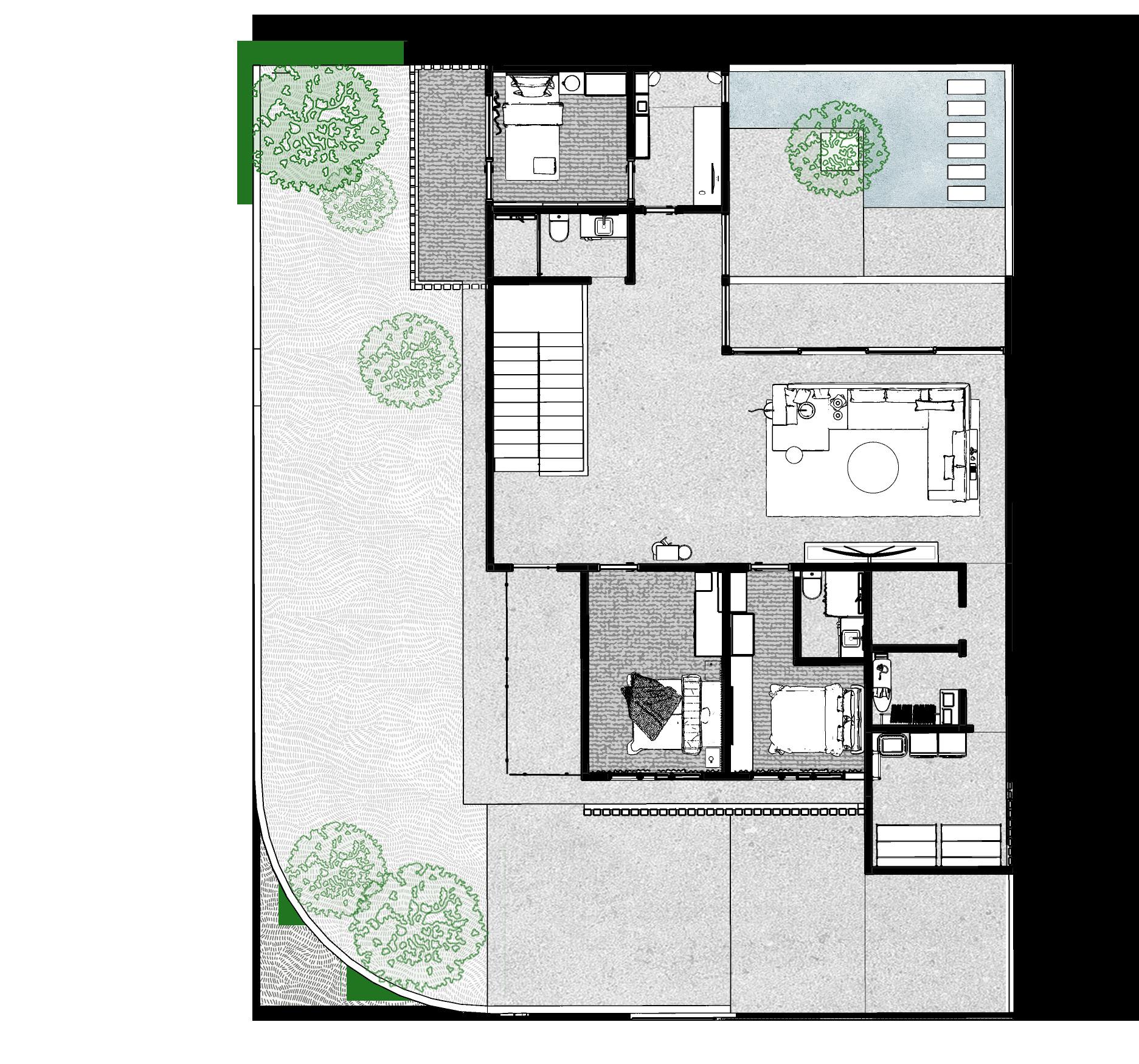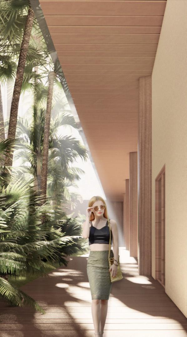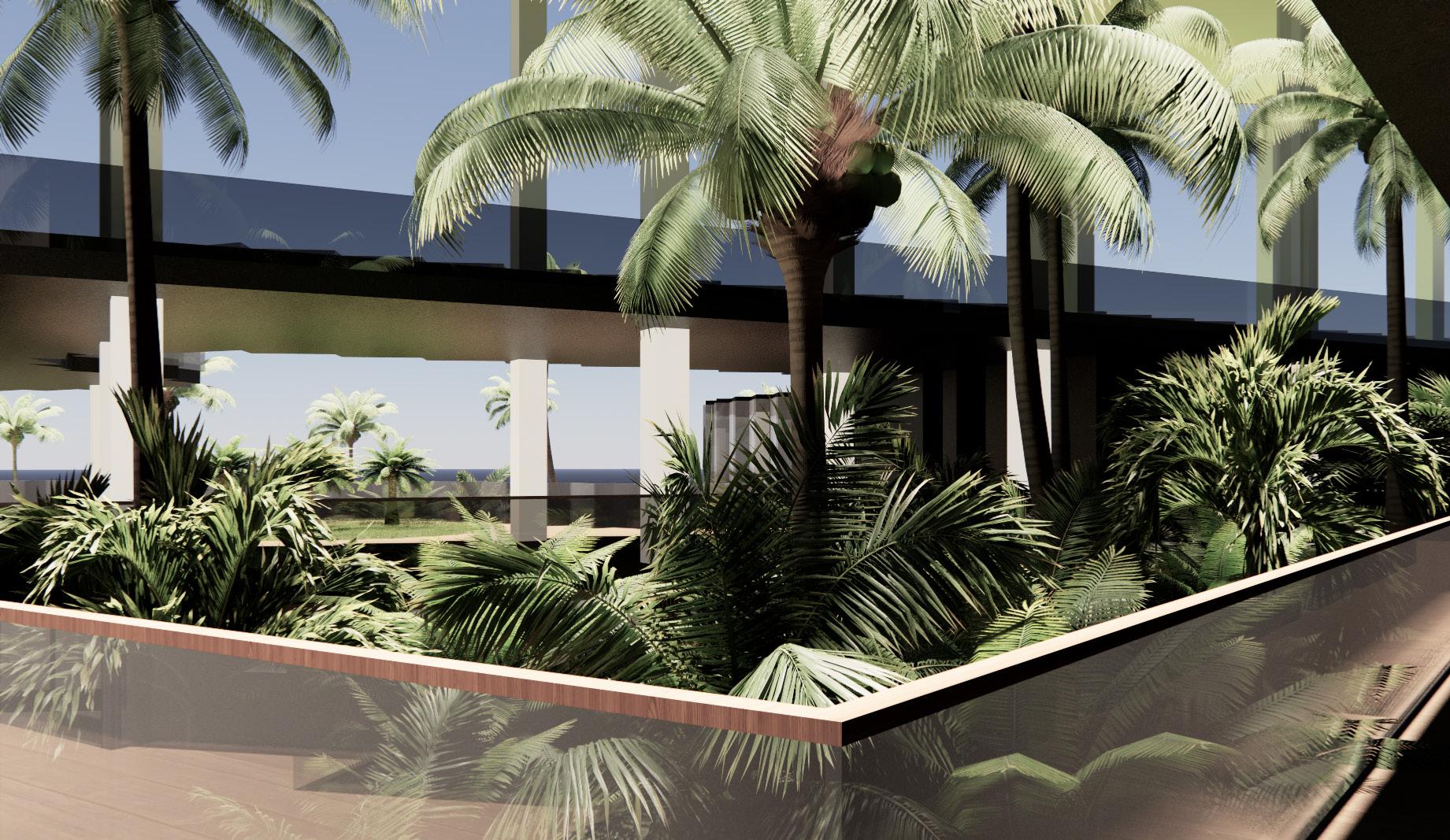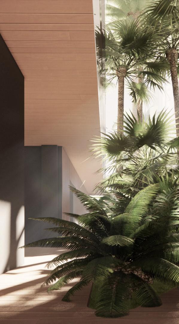 The inner garden which in the middle of the building makes it visible from every main corridor that connects every room which makes the garden the main point of the building.