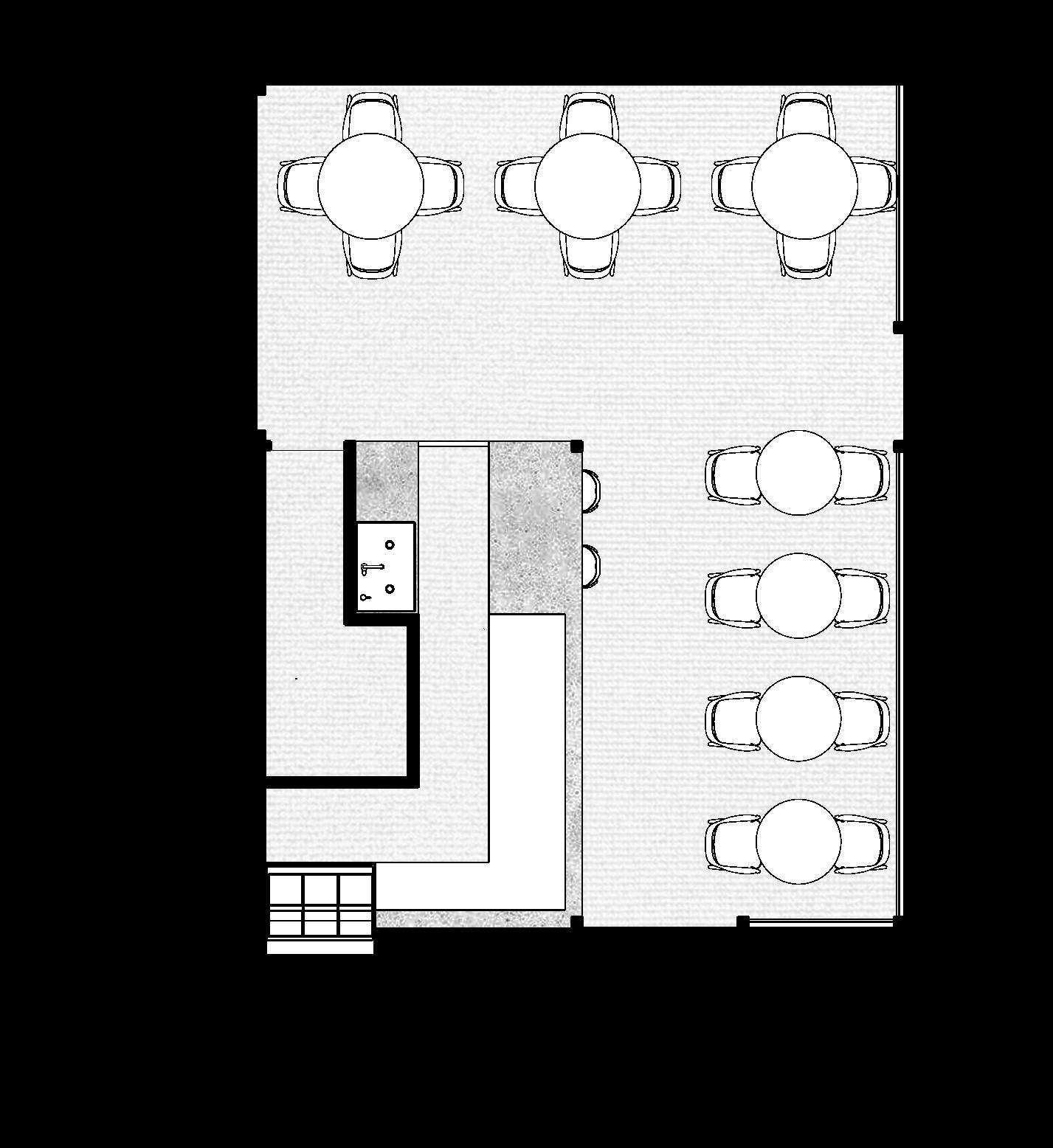 This coffee shop is located inside of a mall so it is designed to be more open without walls to facilitate circulation inside