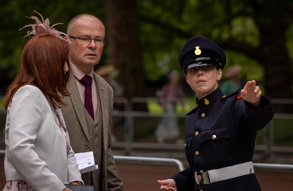 Attired in No 1 Dress, cadets were the first point of contact when guests arrived and they assisted spectators and escorted VIPs. Later in the day, alongside other youth organisations, they led 25,000 members of the public down The Mall from Admiralty Arch to Buckingham Palace for the monarch's appearance on the balcony.