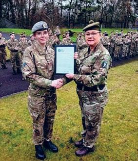 Cdt Charlotte Cameron‑Hay (above, left), aged 16, of Glasgow and Lanarkshire Bn ACF didn't hesitate to go to the aid of a woman who she witnessed being hit by a motorbike as she crossed a road.