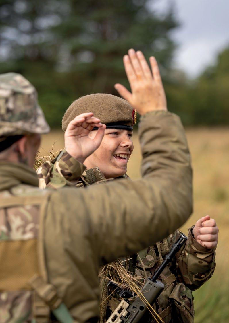 • Through military-themed activities such as drill and turnout, fieldcraft, military knowledge, shooting and weapon handling, we instil maturity, discipline and problem solving and help shape future leaders.