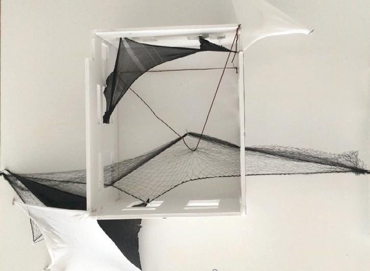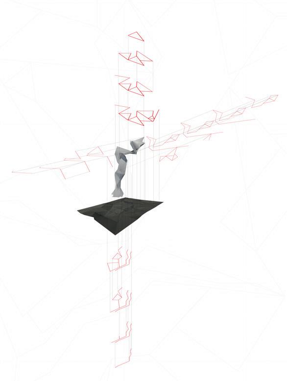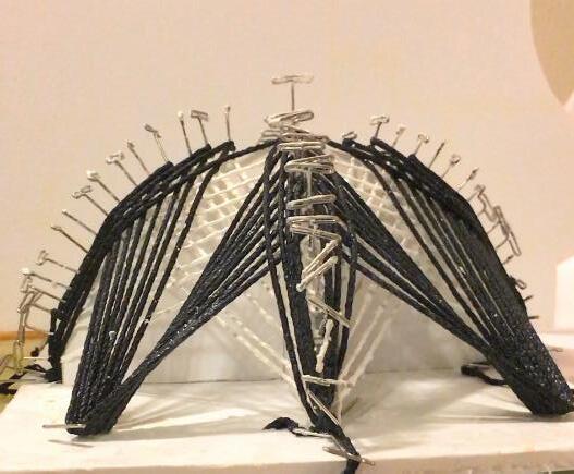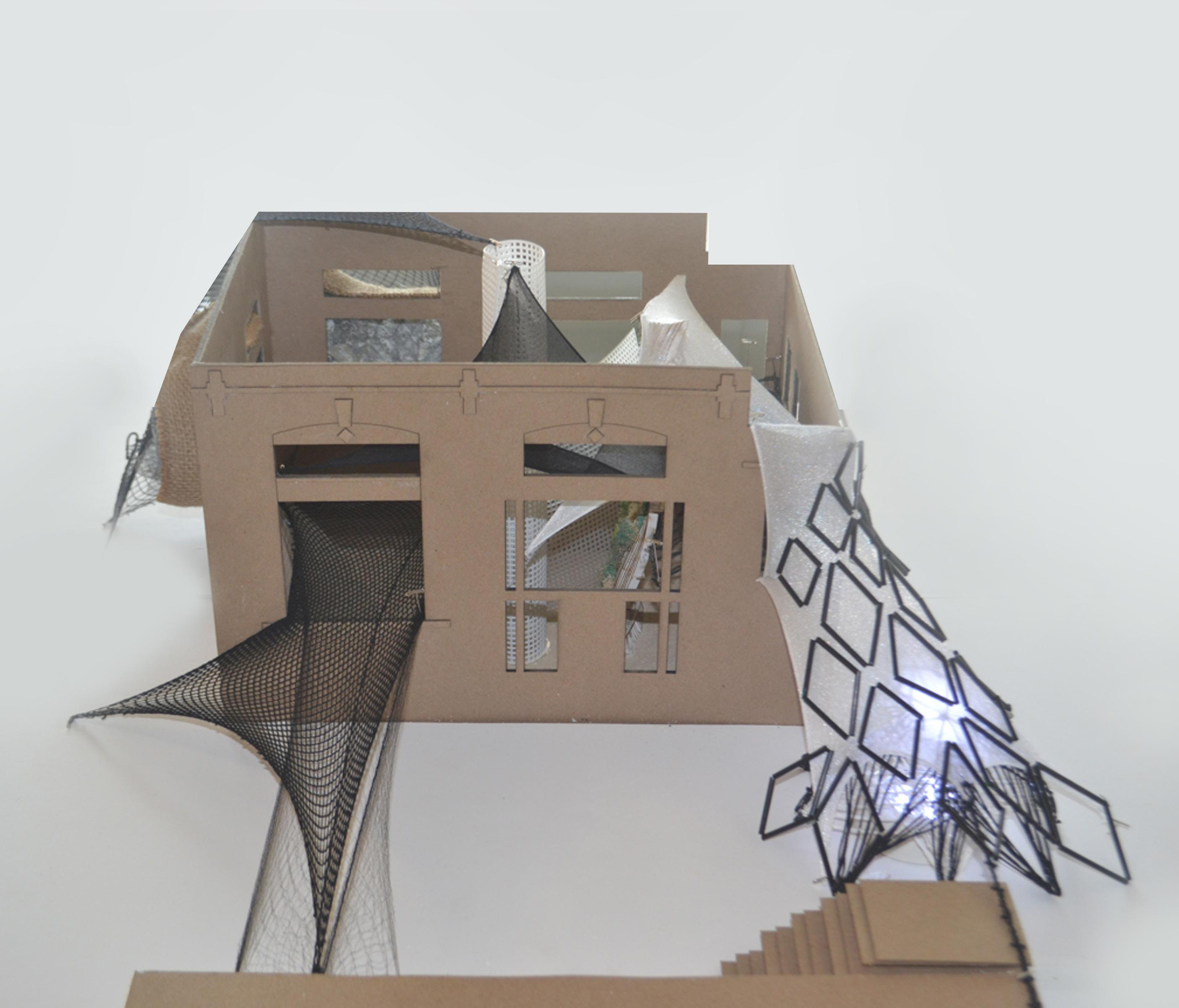 The conceptual model showed the relationship of the 2D surface formed by overlapping the thread in a geometric form to create a woven space that would help in the formation of the design theory. The resulting pattern would then shape the process that facilitates the forming of the space resulting from that relationship.