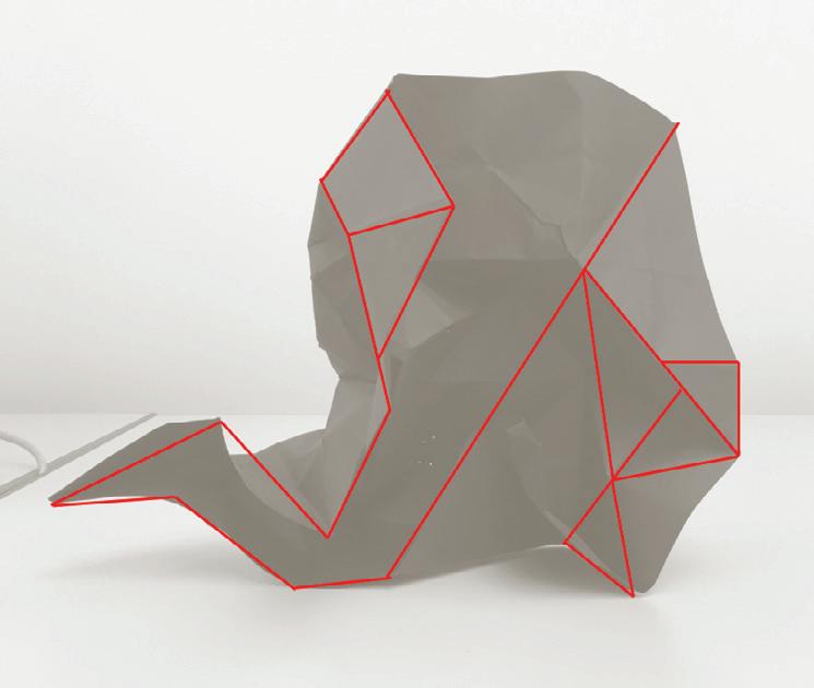 The second model showed the evolution of the design that can be felt and measured in 3D. By studying the site and the solar relationships inside the building, the first point taking shape was decided to begin from the north side of the building, emulating the growth of a feather. After, the feather would grow inside the space, some physical forces would alter its shape to create a precise space in relation with the building’s heritage.