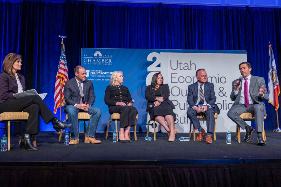 Each January, the Salt Lake Chamber and Kem C. Gardner Policy Institute at the University of Utah convenes the state’s top government and business leaders at the Utah Economic Outlook & Public Policy Summit. In 2025, we embraced the theme “Utah Rising” — focusing on the challenges and opportunities of our state to ensure ongoing success and sustainable growth. Additionally, Spencer P. Eccles led discussions with government and business leaders about Utah Rising, the free enterprise vision for Utah’s economy, and what the business community can expect in the next decade.