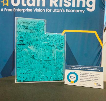 Utah Rising, our comprehensive vision for Utah’s economic future, continues to be at the forefront of our minds and all our efforts. This initiative represents more than a plan; it is a commitment to ensuring that as our state grows, we do so thoughtfully and with an eye toward longterm prosperity for all Utahns. Utah Rising will continue to guide our steps toward progress for Utah’s economy.