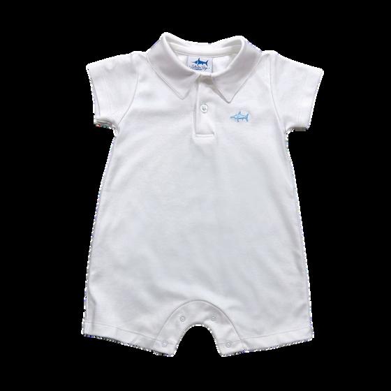 Saltwater Boys Co. signature pima cotton polo in a sweet romper for baby and toddler