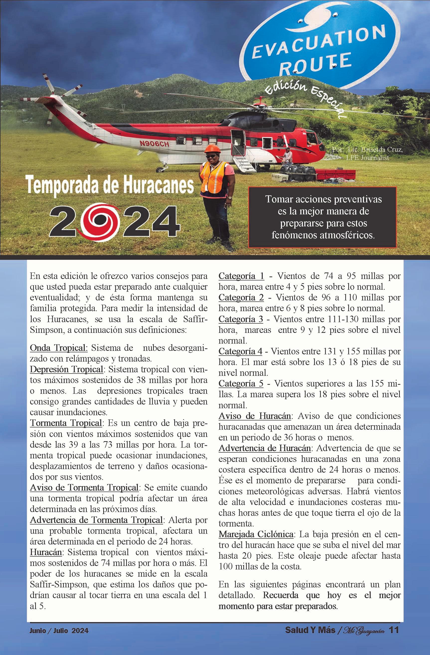 Como todos ya sabemos comenzó la temporada de Huracanes, te ofrecemos consejos para la nueva temporada que acaba de comenzar, donde te orientamos que hacer antes, durante y después de un fenómeno atmosférico; además te brindamos tu mapa para que puedas seguir la trayectoria de éstos. Hablaremos como de costumbre de temas de salud entre los que encontrarás, que es Triquinosis, Fibromialgia, septicemia, entre otros temas de salud.