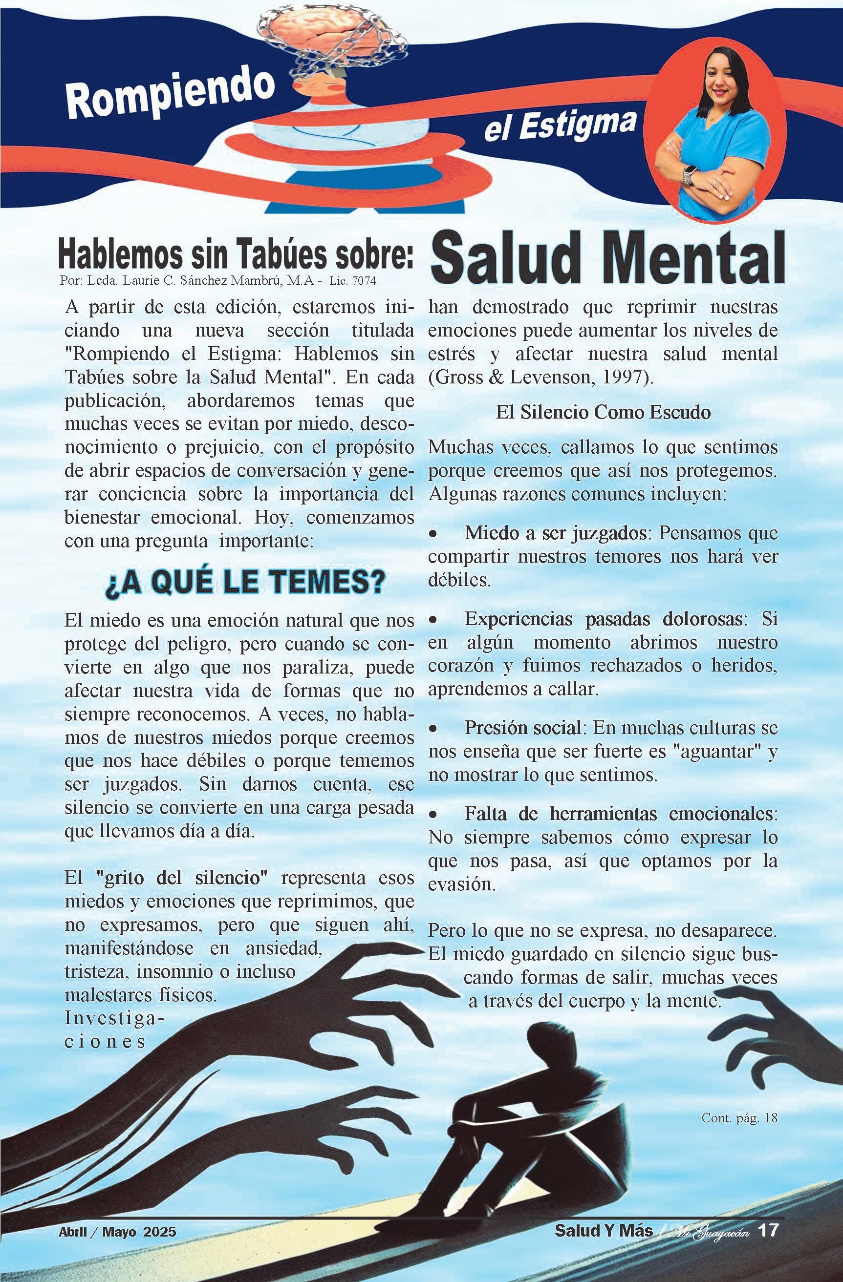 En ésta nueva edición te ofrecemos como de costumbre información de salud y una sección dedicada a el Autismo. También comenzaremos una nueva sección dedicada a un tema que nos está afectando mucho como sociedad, la Salud Mental, conocerás que son los Sabañones, la Esclerodermia entre otros temas en de salud.