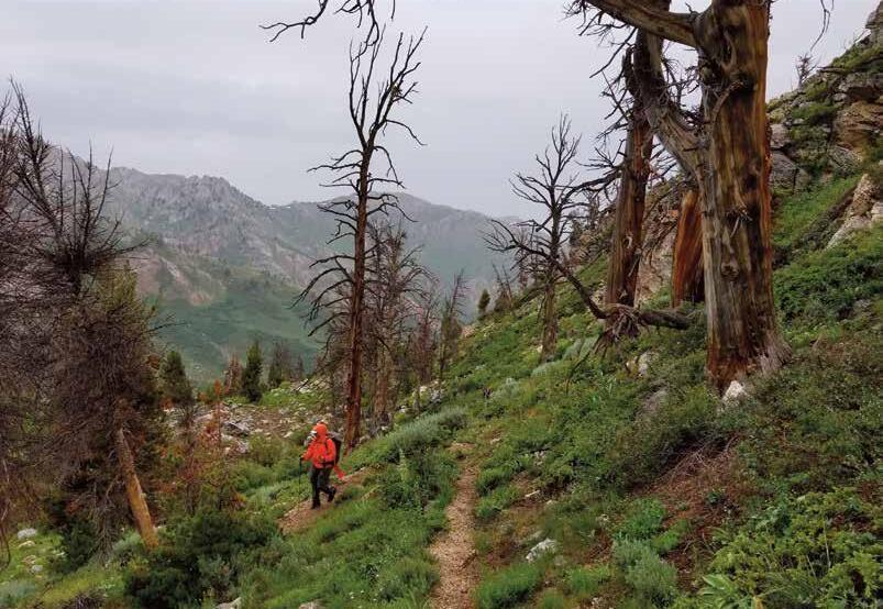 While not always clearly marked, there are rock cairns along the way to reassure hikers they’re on the right path. Veteran hikers seem to unanimously recommend starting at Harrison Pass, elevation 7,200’ and ending in Lamoille Canyon at 8,780’. The highest point along the Trail is Wines Peak, reaching 10,893’ in elevation. A pointto-point hike, there is a shuttle service available to get you to the starting