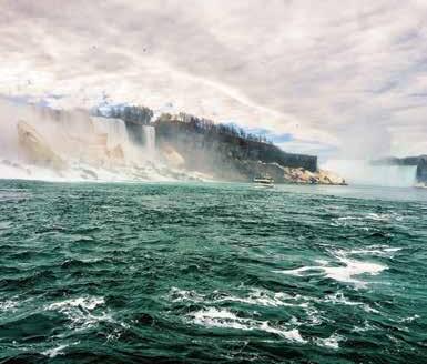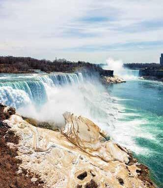 amoment of unbridled chaos in the quiet of nature. The steady roar and looming majesty of America’s waterfalls make them an awe-inspiring destination. Travelers will gladly trek through unforgiving wilderness and over challenging pathways for a chance to look upon the face of a huge waterfall.