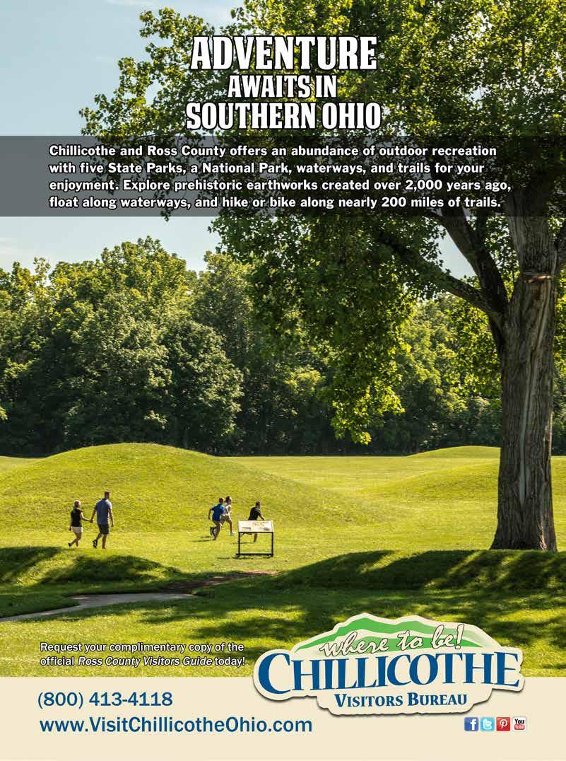 To find out more about these adventures, request your complimentary copy of the RossChillicothe Visitors Guide by calling (800) 413-4118 or online at www.VisitChillicotheOhio.com.