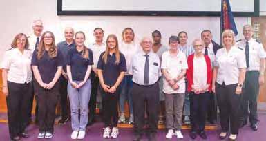 LAUREN, Chloe, Annabel, Peter, Jackie, Norma (all front row), Ste, Alex, Magalys, Joy, Beth, Ken (all back row) and Jack and Samuel (not pictured) were welcomed as adherents by the then corps officers Majors Chris and Lin Herbert. We thank God for their different journeys into faith. Some have been part of the fellowship for many years, others have come through our community work. We continue to pray and live out God’s word, that this corps will be a house of prayer for all nations and that in this place God will bring peace. Also pictured are Recruiting Sergeant Jeanette and Ray holding the flag. – LH
