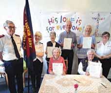 DAISY and Evie were enrolled as junior soldiers by corps officer Major Diane Kinsey and Daisy’s grandmother, Christine Jones, was welcomed as an adherent by corps officer Major David Kinsey in front of a full hall of family and friends. Sitting around tables, the congregation were invited to decorate cakes and make Olympic torches as they focused on Joshua 24:15, to choose this day whom they will serve. Daisy, Evie and Christine are pictured with Major Diane. – DK