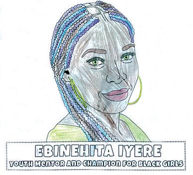 This colouring of Ebinehita Iyere was sent to us by Megan, age 12, to celebrate Black History Month. Ebinehita’s hair looks amazing!
