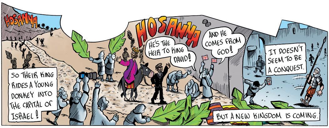 I wonder what it was like when Jesus was welcomed as a king in Jerusalem. Well, the Bible tells us what happened. You can read the Bible cartoon opposite to get an idea of what it might have been like. No one other than Jesus had planned anything –
