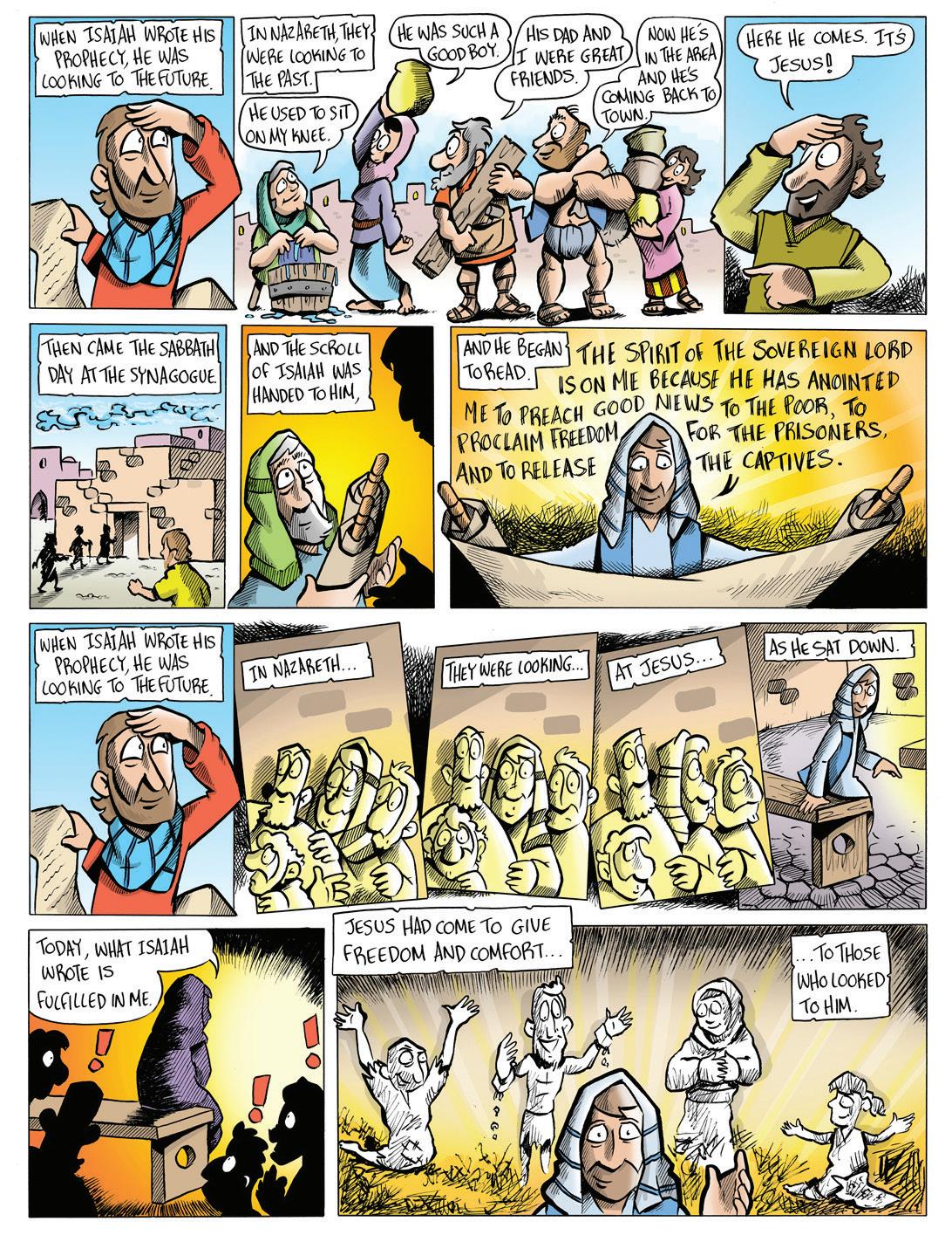 However, this story had been given to its writer, Isaiah, by God. In fact, it’s the same story we learnt about in last week’s cartoon. Isaiah had written that someone would care for those in need and even bring sight to the blind! Doesn’t that sound a lot like Jesus?