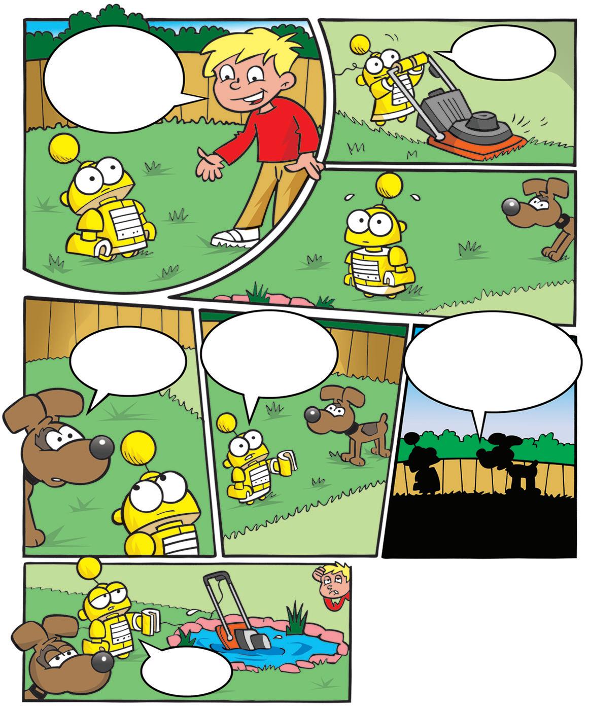 DON’T WORRY, ROBOT, I’M SURE IT CAN BE SORTED OUT. WHERE’S THE MOWER NOW?
