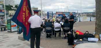 TORQUAY An open-air meeting at the inner harbour commemorated 160 years of The Salvation Army and 137 years since Salvationists were arrested for attending an open-air meeting at the inner harbour. The band played in the exact place where the arrests took place. A plaque erected in 2018 records the event. Literature was distributed extensively, and proceedings were concluded by the band playing everybody out with ‘Crown Him with Many Crowns’ (SASB 358), a fitting conclusion to a wonderful occasion. – MR