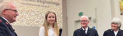 BEFORE leaving for university, Harriet Stewart was welcomed as an adherent by corps officer Major Geoff Chape. She testified to why this step is important and chose music and songs to enhance the meeting, including ‘Your Grace Still Amazes Me’ from the songsters and ‘Guardian of My Soul’ from the band. Harriet has been involved with the singing company and it was particularly moving to hear them sing as she signed the Adherent’s Certificate at the mercy seat with her chosen prayer partner. Also pictured is Flag Bearer Robin Moorwood. – LC