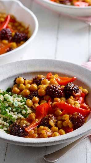 Season with the salt and pepper, then stir to combine the mixture well, breaking up any whole tomatoes. Cover and cook for 1 hour 20 minutes, stirring halfway through. Add the blackberries to cook in the final 10 minutes.