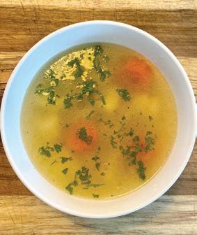 6. Strain soup so it’s clear and add noodles, then cook until noodles are soft. Dice cooked carrot and add back in.