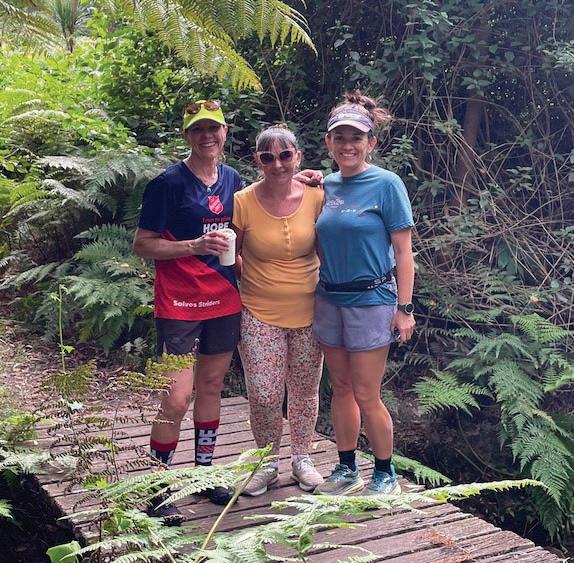 Alison Hawley, left, discovering beautiful bush trails with two group participants.