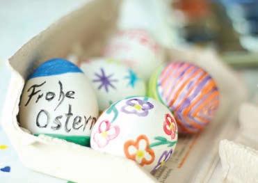 Happy Easter is painted on brightly coloured eggs in Germany.