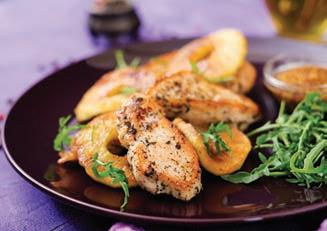 • Remove chicken and apples, heat pan to high and simmer sauce for 2 minutes to thicken.