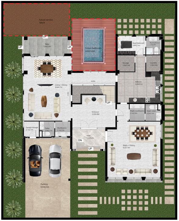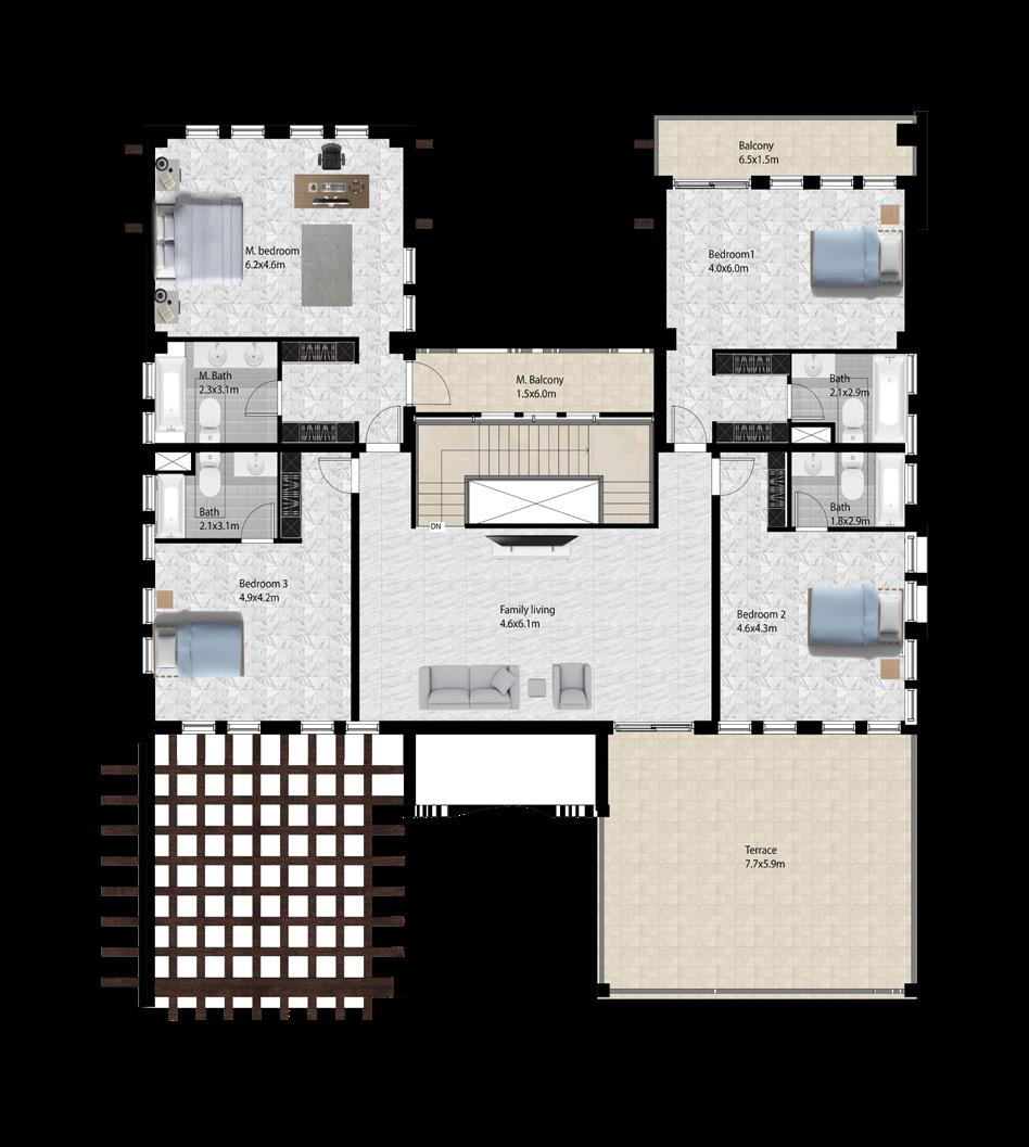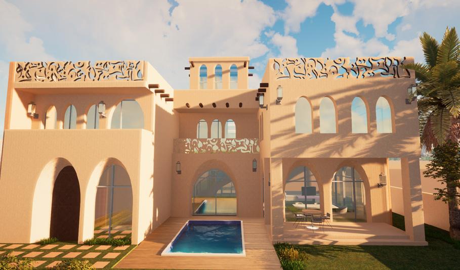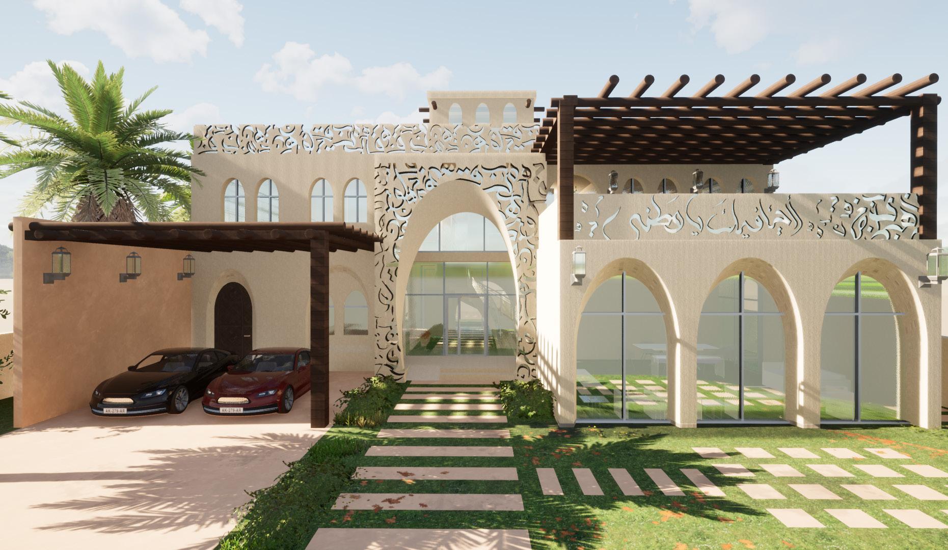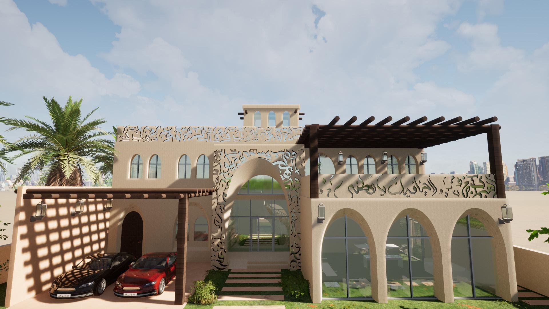 This project Won the first place in Mohammed Bin Rashid Housing Establishment for the Design of housing units Competition ; this villa has been designed to suit the Emarati family. This villa design’s main idea is to integrate the Emarati heritage by adding the Barajeel, the sand color, etc., and the Arabic calligraphy to merge the modern Arabic style with the Emarati traditional house.