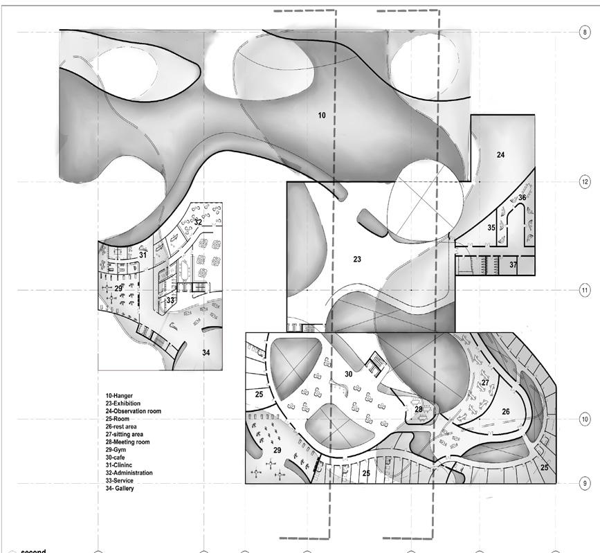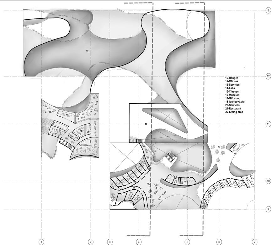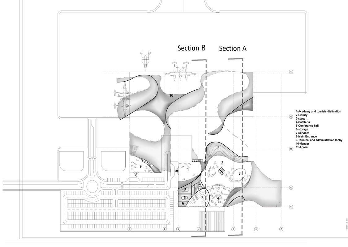 The project has been divided into five zones: Terminal, administration, tourist destination, academy, and exclusive area. The building consists of four floor plans. Different facilities were distributed in detail for each zone as shown in the plans.
