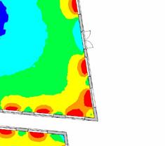 For the daylight factor, on a standard day, 7% of natural light passes, 0.7% building ADF and 92% below threshold. e dark areas (least light) are represented by the blue colour which means it is the coldest area and that has 0% of the light as labels on each oor, the yellow represents a higher sun light which goes from 2% to 10% of natural light, where orange and red represent the highest sun light which means more heat and the percentage goes up to 23%.