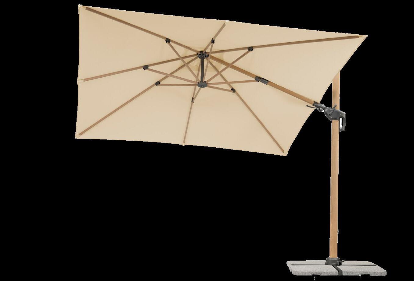 Hochwertiger Pendelschirm aus anthrazitgrau pulverbeschichtetem Stahl/Alu-Gestell, 2-tlg. Alu-Mast, Stahlstreben, Drehteller mit Fußpedal – 360° drehbar, neigbar und seitlich kippbar