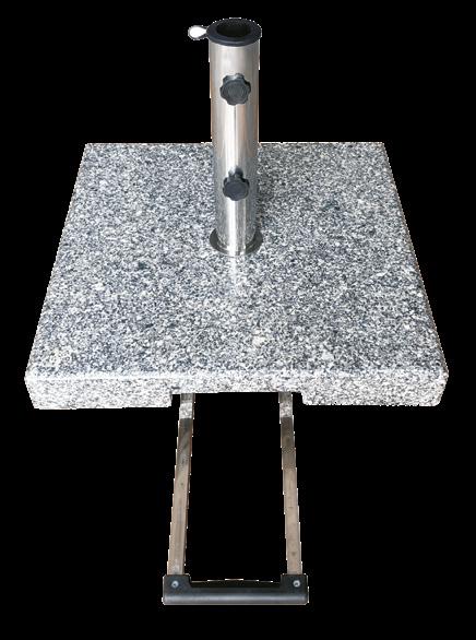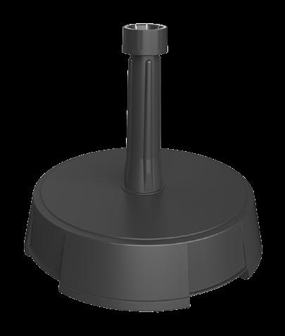 Kunststoff mit Beton gefüllt, mit Handgriff. Für Schirmrohre bis Ø 38 mm / Schirme bis Ø 200 cm.