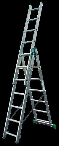 Dreiteilige Vielzweckleitereinsetzbar als Anlegeleiter, Stehleiter und Schiebeleiter.