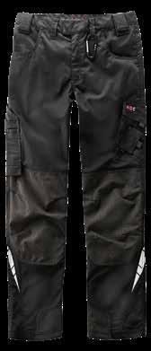 64 % Polyester, 34 % Baumwolle, 2 % Elasthan, robuste Canvas-Qualität (270 g/m2), Besätze aus Cordura, Reflektoren aus 3MTM ScotchliteTM, breite KlettGürtelschlaufen zum Einhängen von Werkzeug, verstellbare Hammerschlaufe, doppelte Zollstocktasche.
