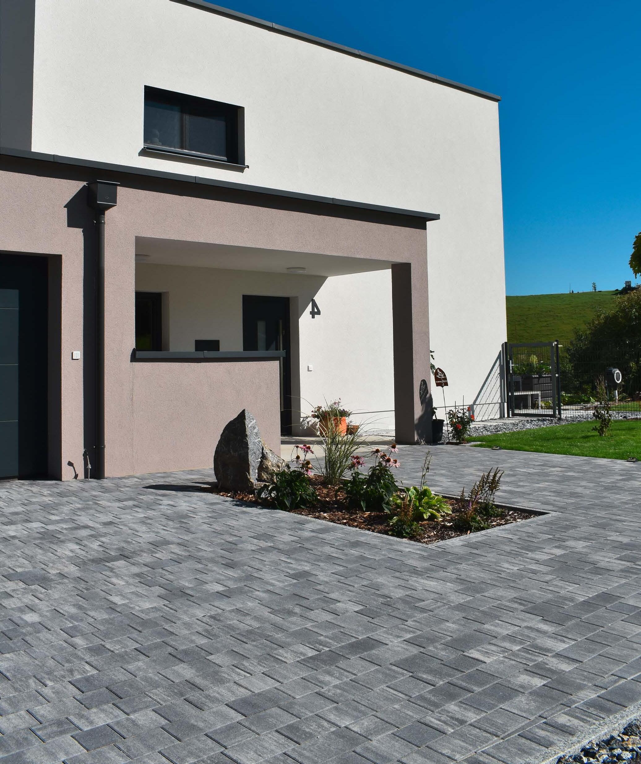 Dieses Kombiformatpflaster ist der perfekte Baustein für jede Einfahrt, Garage uvm. Der moderne Colorflow-Mix schafft in Verbindung mit den warmen Farben ein harmonisches Gesamtbild. Bestehend aus vier Steinformaten, nur kombiniert erhältlich.