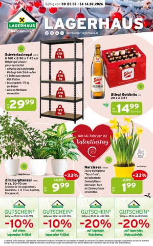 Einlösbar in allen Salzburger Lagerhäusern & teilnehmenden Standorten. Der Rabatt wird ausschließlich bei Abgabe des Gutscheins vom gültigen Verkaufspreis abgezogen. Ausgenommen sind: Aktionsartikel (inkl. Flugblattangebote), bereits rabattierte Produkte, Treib- und lose Brennstoffe, Dünge- & Futtermittel, Rasenroboter, Tabakwaren, Lotto/Brief-/Rubbellose, Gutscheine, Dienstleistungen, Reparaturen und Leergut. Nicht kombinierbar mit anderen Rabatten oder Gutscheinen. Gültig nur bei Bar- oder Bankomatzahlung. Die Rabatte gelten auch für Webshop-Reservierungen – einfach bei der Abholung und Bezahlung an der Kassa vorzeigen.