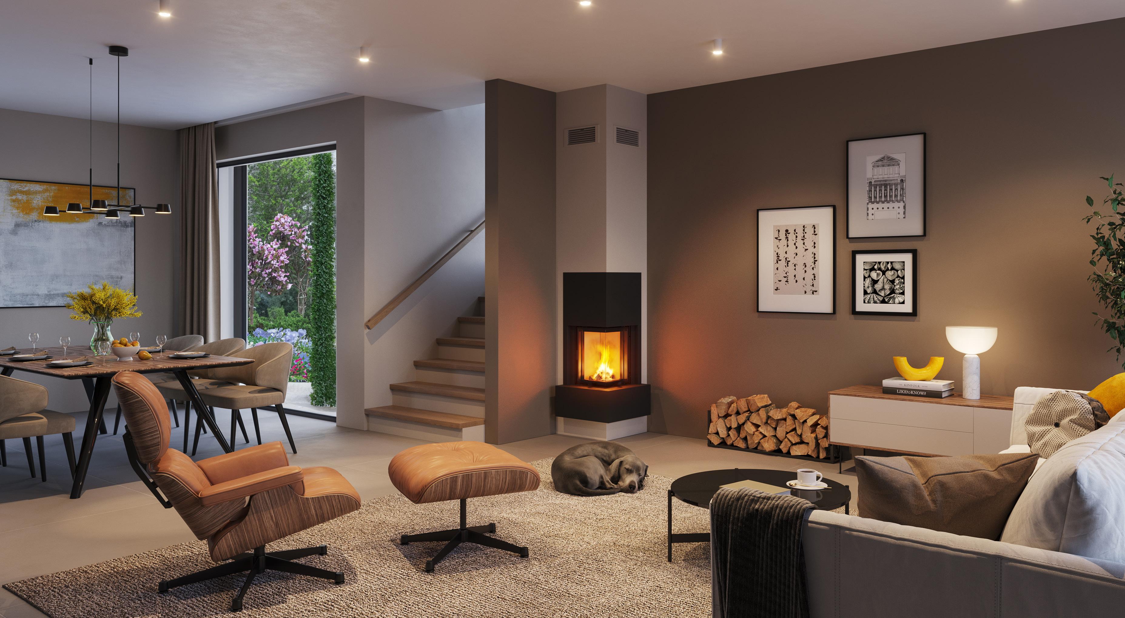 Eckfeuerstätte mit hochschiebbarer Feuerraumtüre – so zieht pure