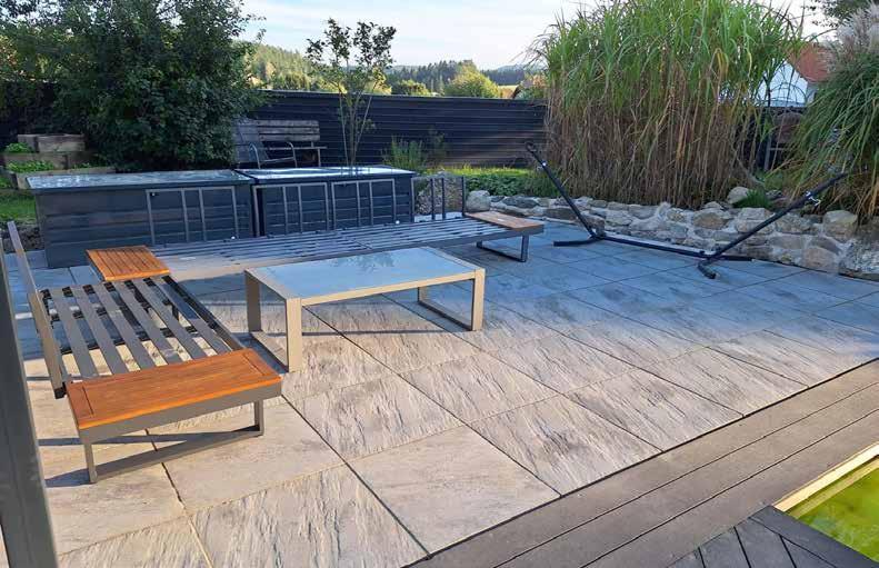 Die Nature Moments Gartenplatte bietet dir eine schieferähnliche Struktur mit Glimmereffekt und besonders dichter Oberfläche – edel, modern und ausdrucksstark.