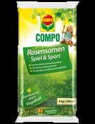 Lücken schließen – jetzt nachsäen Nach dem Vertikutieren lassen sich kahle Stellen bis Ende Oktober problemlos mit COMPO Rasensamen Spiel & Sport oder der COMPO Turbo Nachsaat auffüllen.