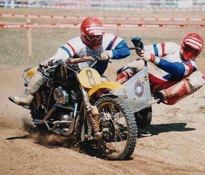 Blacky Betschartund Othmar Gamper aufdem legendären Harley-Davidson-Gespann.