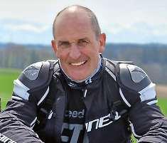 Ohne Helm sieht er mit seinen Tattoos und Piercings aus wie ein lebendes Kunstwerk