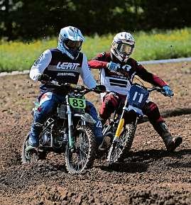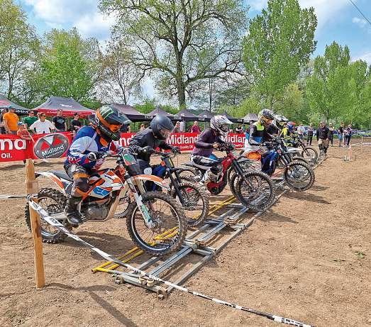 Punkten (2,72 Punkte pro Sektion), aber dennoch verdient den Sieg einfahren Der Zweitplatzierte Sven Wolfensberger lag mit 91 Punkten nur wenig dahinter Er konnte sich gerade noch knapp vor Claudio Stampfli mit 92 Punkten behaupten Claudio, neu 4-Takt auf 4RT fahrend, war mit Vater Alex angereist Der wollte seine neu aufgebaute Ariel als Gast testen, bevor er damit nach Schottland zur Pre65 reiste Mit null Punkten nach vier Runden in der grünen Spur schien alles zu funktionieren Der Sound begeisterte dabei manchen Zuschauer