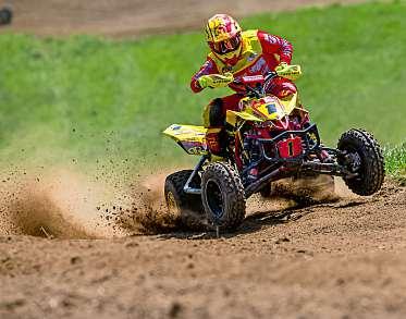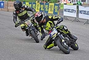 Auf der relativ kurzen und nicht allzu breiten Rennpiste war das Qualifikationsrennen im Hinblick auf eine gute Startposition in den Rennläufen das A und O Jannik Hintz zog auf der Sting-Yamaha als Trainingsschnellster los Auf der staubigen Innenbahn rutschte ihm beim Anbremsen in die 180-Grad-Kehre das Vorderrad weg und er lag am Boden Neben Hintz traf es Mitfavorit Raoul Tschupp (KMS-KTM) am schlimmsten Beide mussten dem enteilten Feld hinterherhecheln Hintz schnappte sich bei der Aufholjagd sagenhafte 22 Mitkonkurrenten